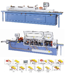 مجهز به ایستگاه های پیش فرز، چسب زن و غلطک فشار، اره سر و ته زن نوار، فرز پرداخت اولیه، فرز پرداخت ثانویه، فرز کرنر گوشه نوار، لیسه نوار، لیسه چسب، پولیش